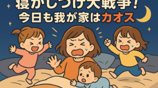 まるで戦場のゴングが鳴り響く我が家の寝かしつけ。今日の戦いの記録。母のゲージ30%。寝るまでが長く、やっと布団に入るも、まだ寝ない。プロレスや壮大な倫理・・・ 母ゲージ残り僅か・・・結局寝落ち。そんなドタバタ劇場です。