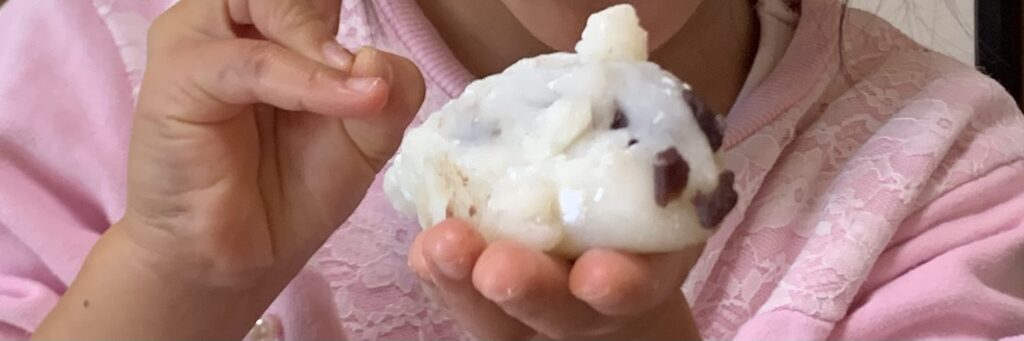 おもちでウサギをつくってみたり!水の中にお餅を入れてツヤツヤもち!と言っていたり