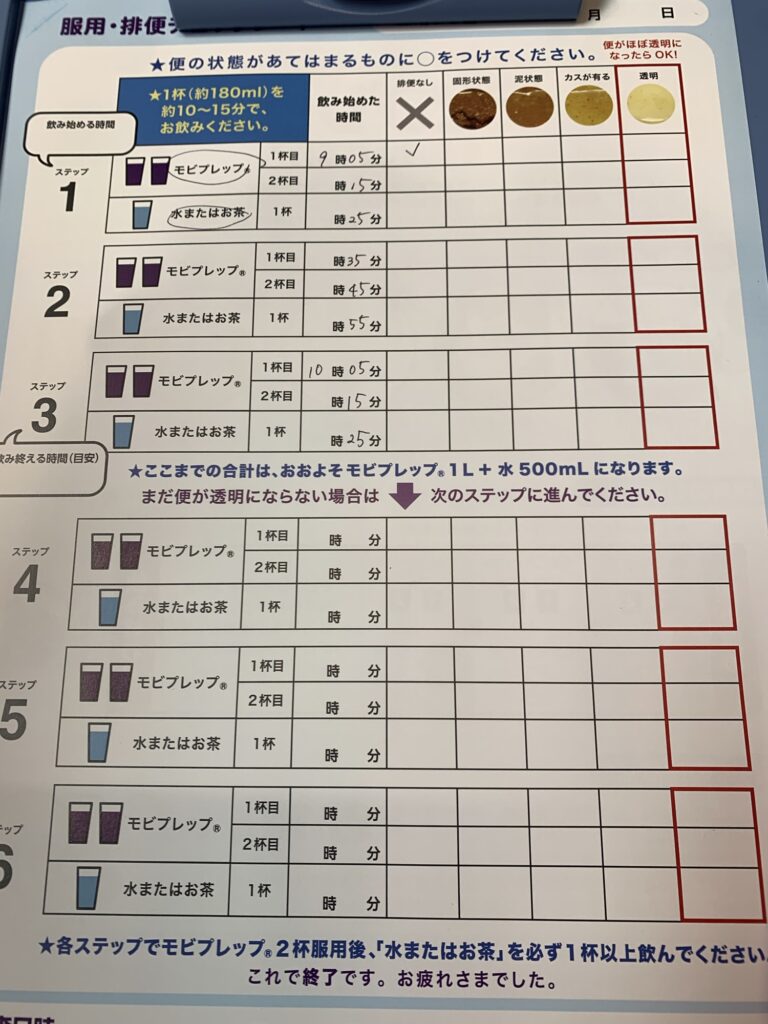 病院に到着後、このなんとも言えない飲み物をのみます。モビプレップというものらしいです。